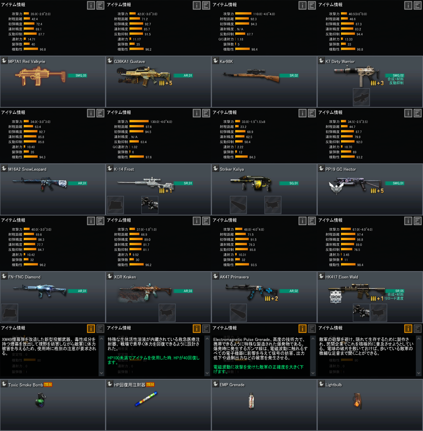 オンラインゲームの特性上、アップデートやパッチにより全てのアイテムは、