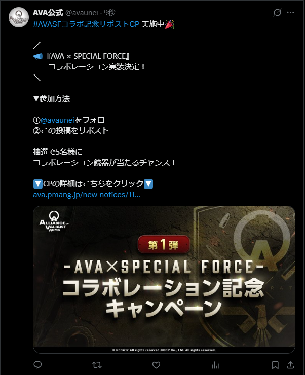イベント | 【10/17 〜 10/22】[AVASPECIAL FORCE]コラボ決定! リポストキャンペーン開催中! |