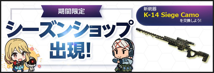今回のシーズンショップはスナイパー銃器のK-14系列銃器が登場!