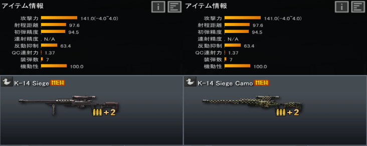 また、K-14 Siege、K-14 Siege Camoは本日よりブラックマーケットへの登録が可能となっております!