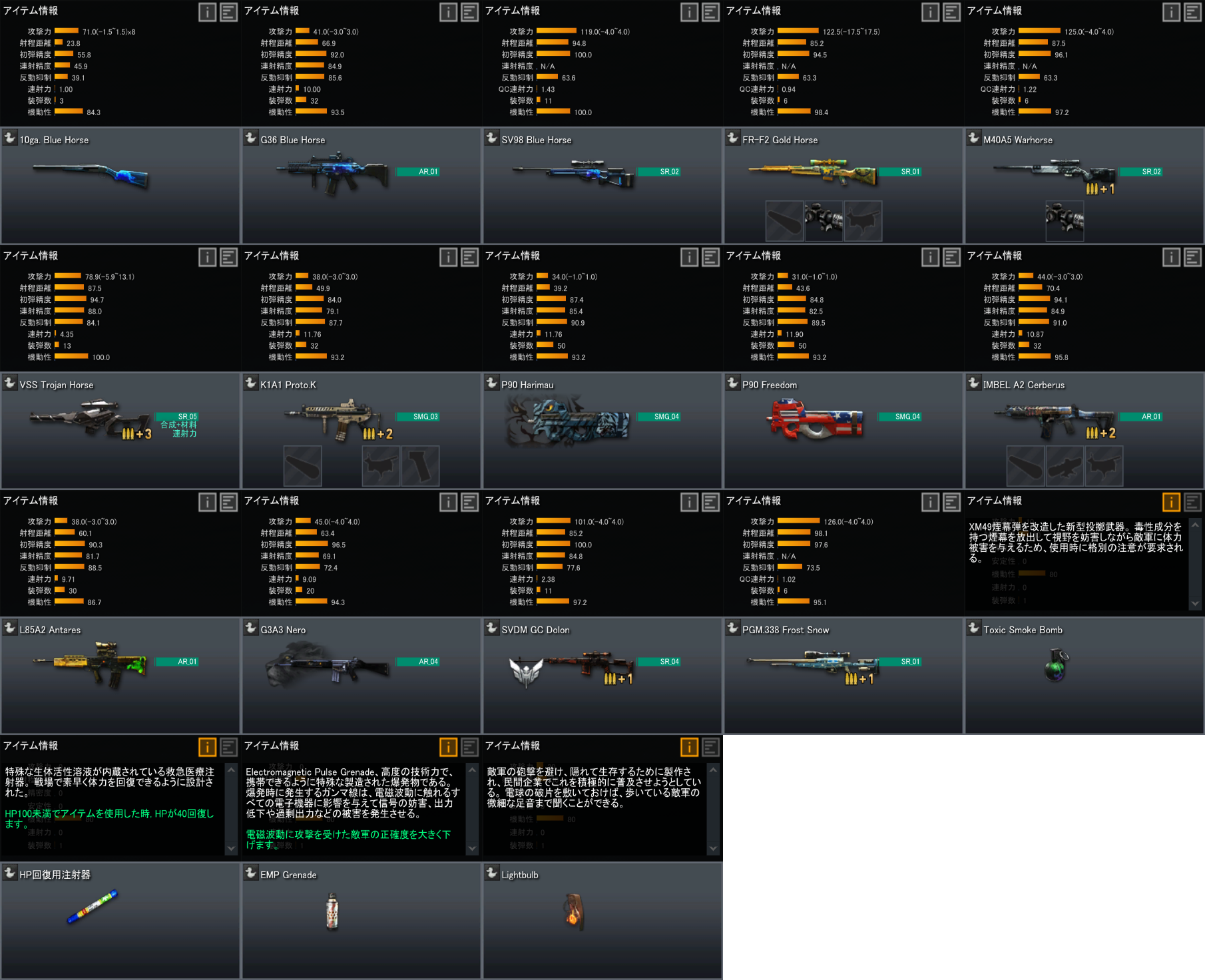 オンラインゲームの特性上、アップデートやパッチにより全てのアイテムは、