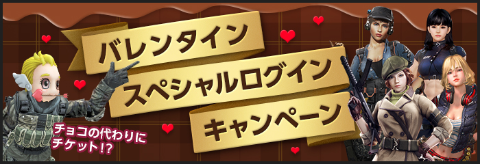 | キャンペーン | 【2/4〜3/4】「ミリタリーパッケージ」更新! 「ショコラボム」等バレンタインアイテムが登場! |