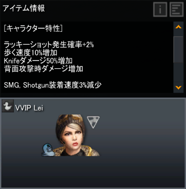 ▼ポイントマンキャラクター「VVIP Lei」のアイテム情報