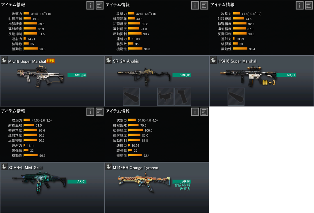 他にもHK416 Super MarshalやSCAR-L Mint Skulllなど強力な合成素材銃器がラインナップ!
